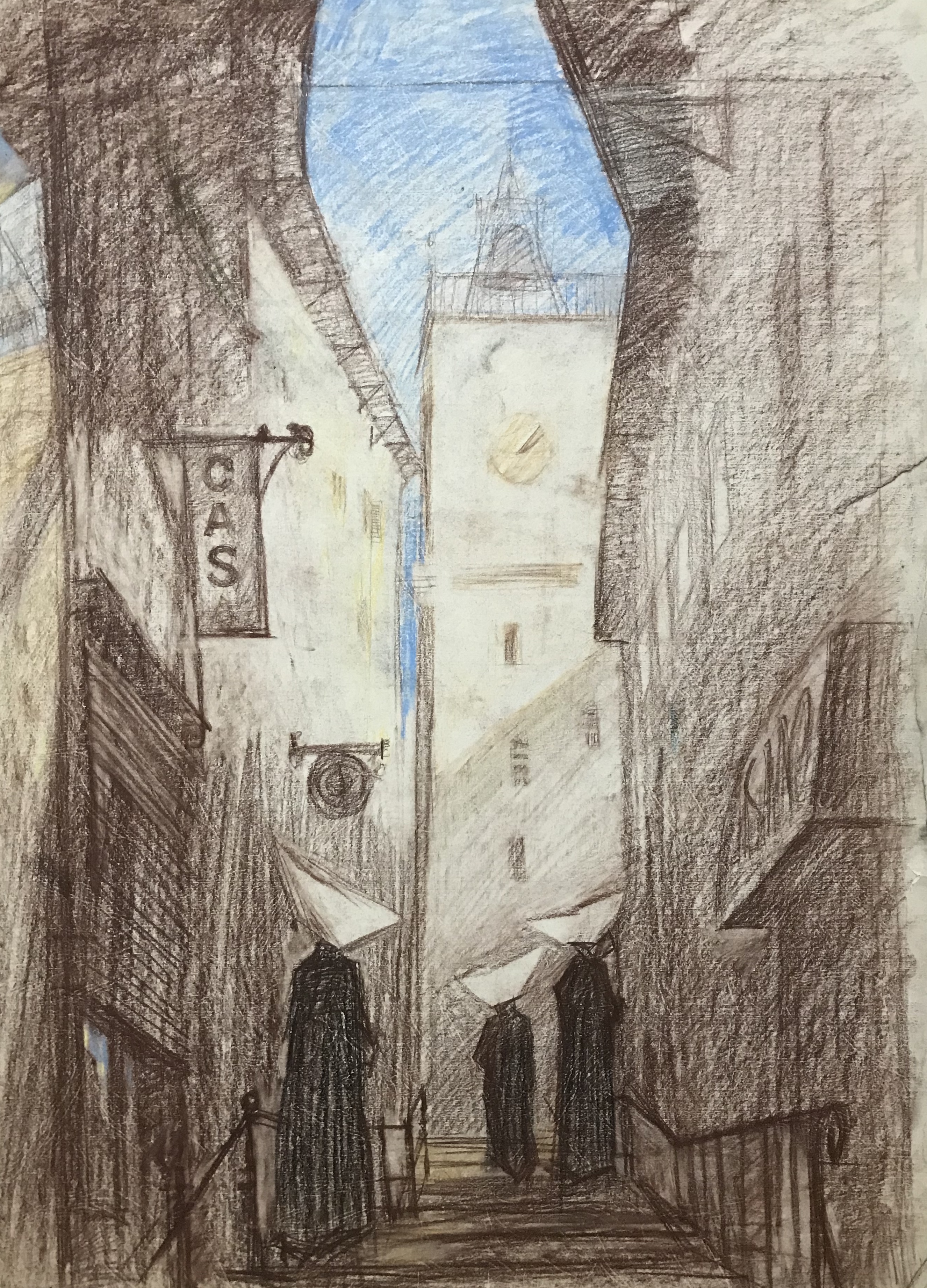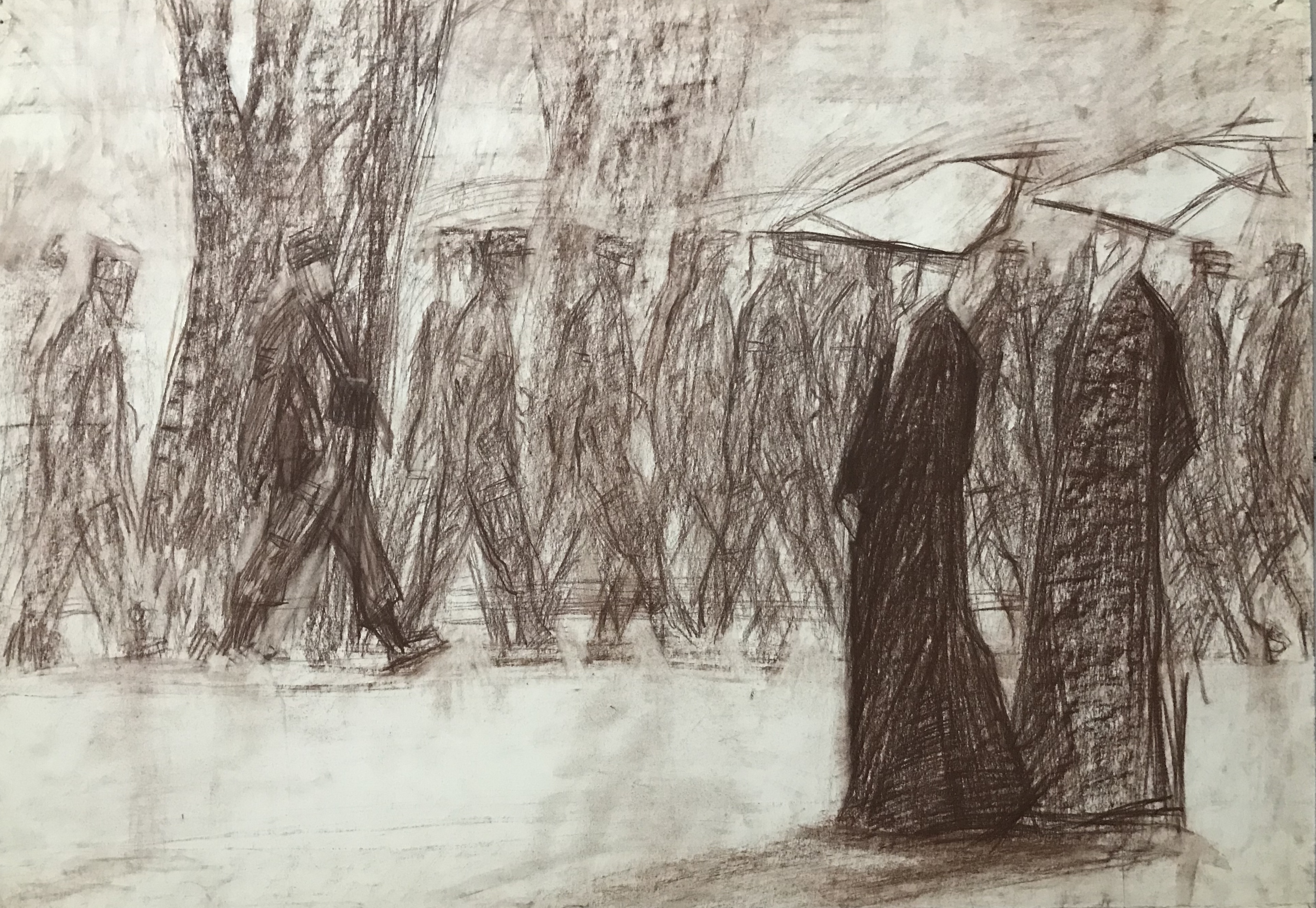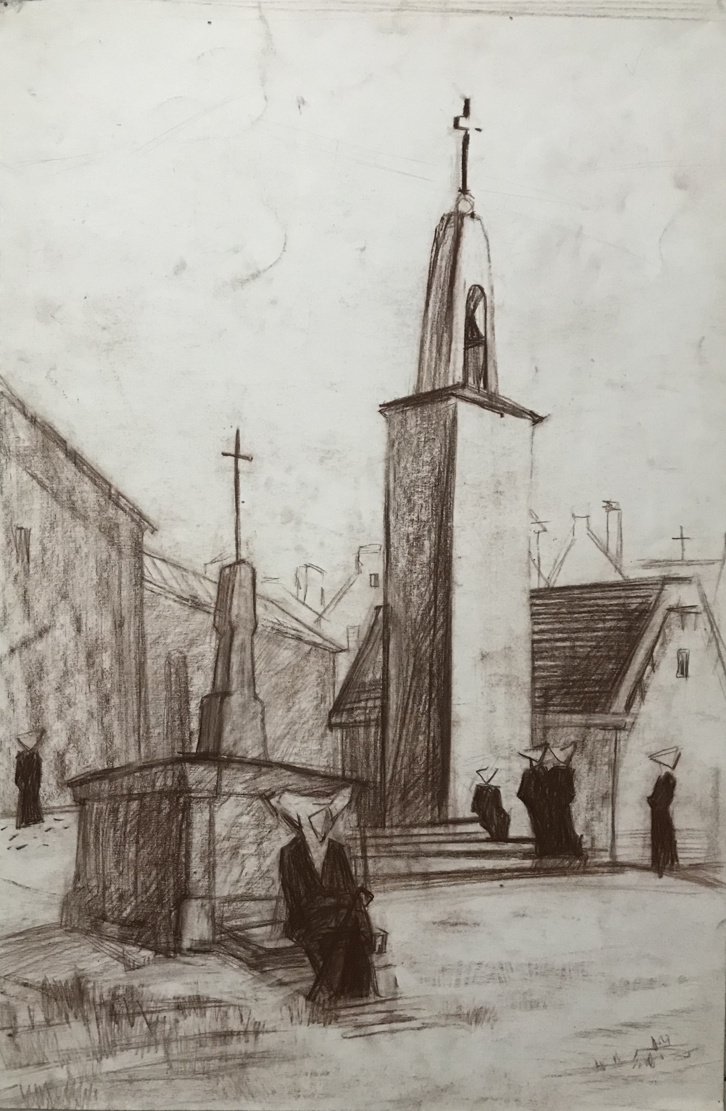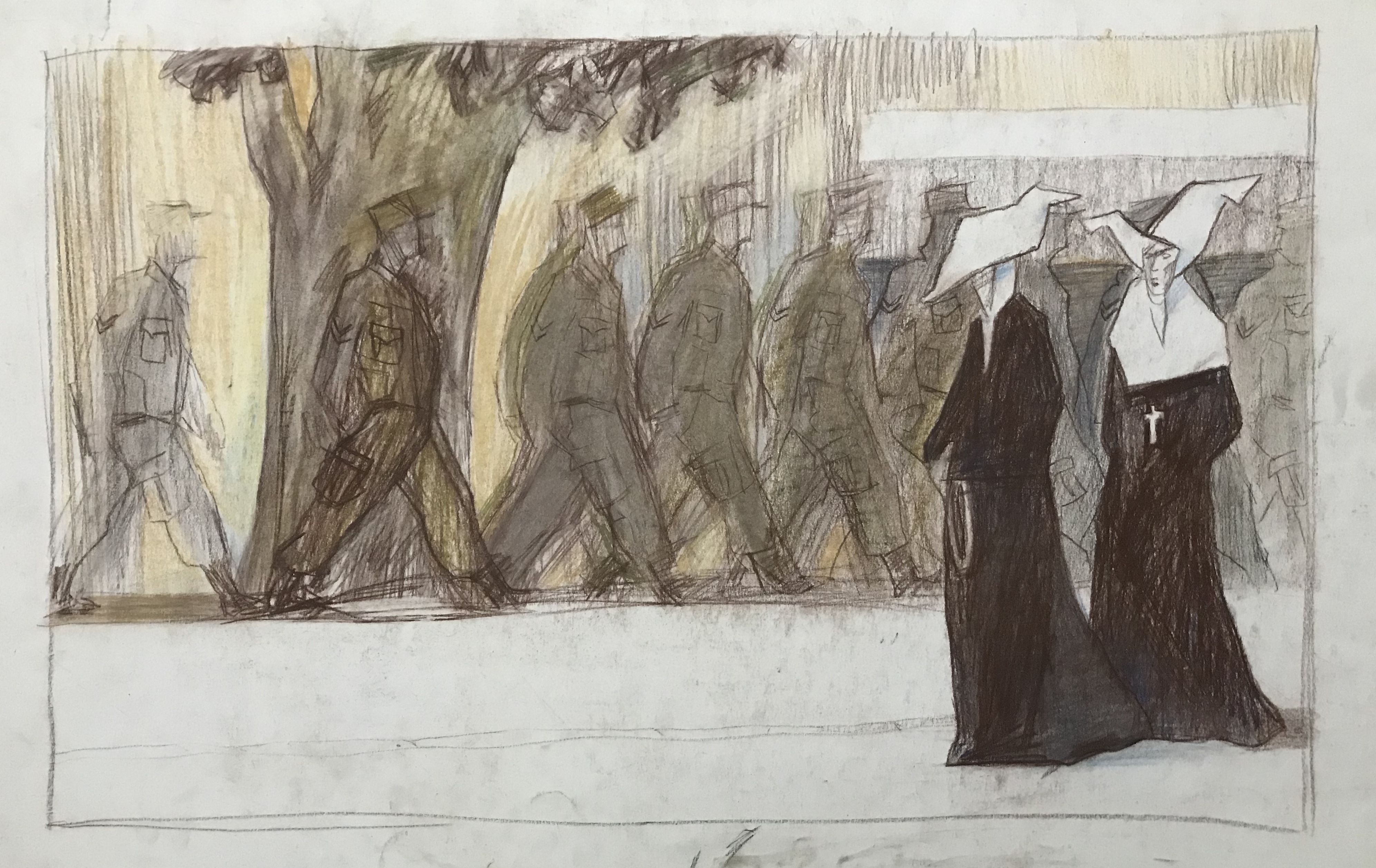 Nuns at noon, dessins préparatoires au crayon sépia sur papier, dimensions variables, 2001
