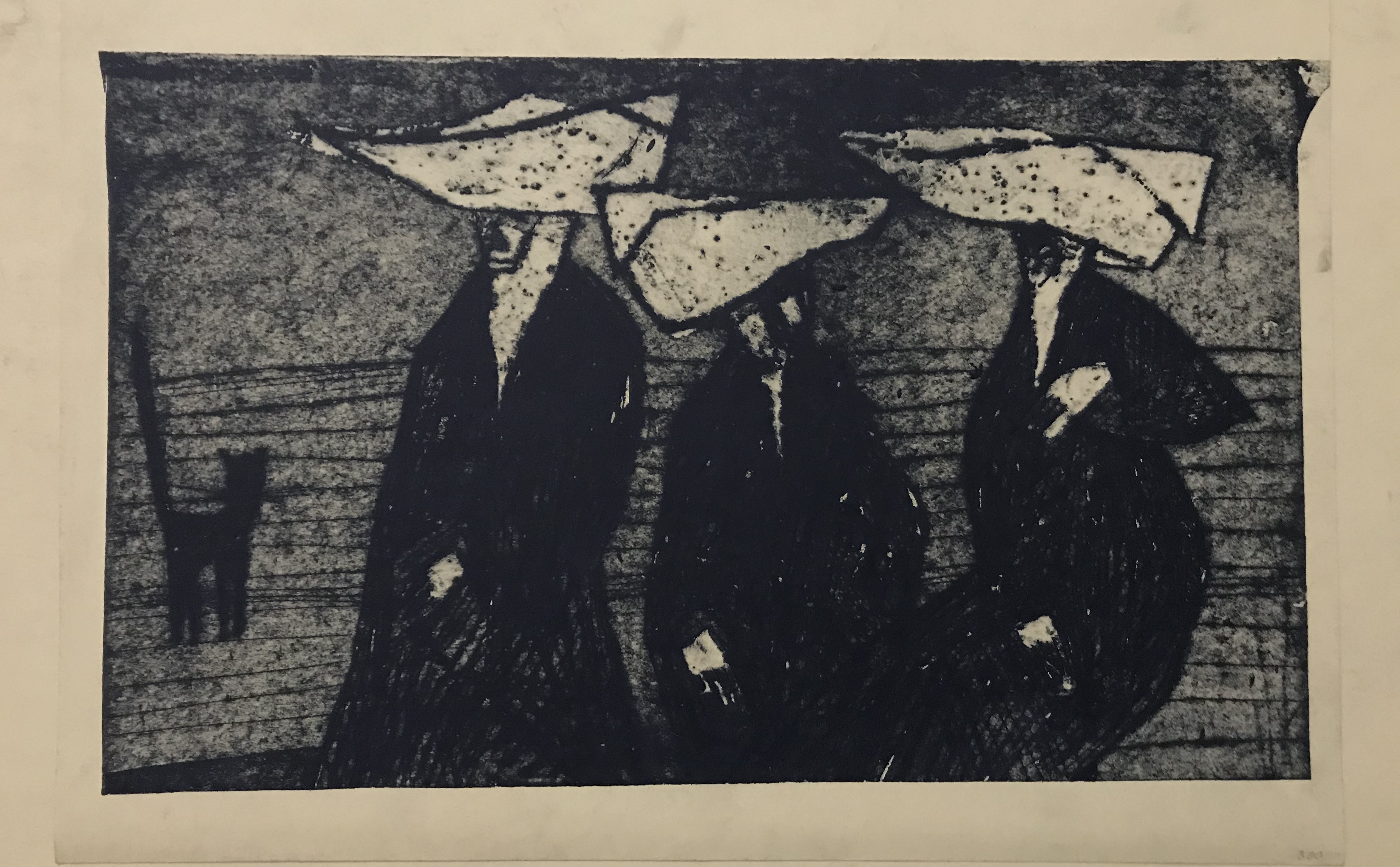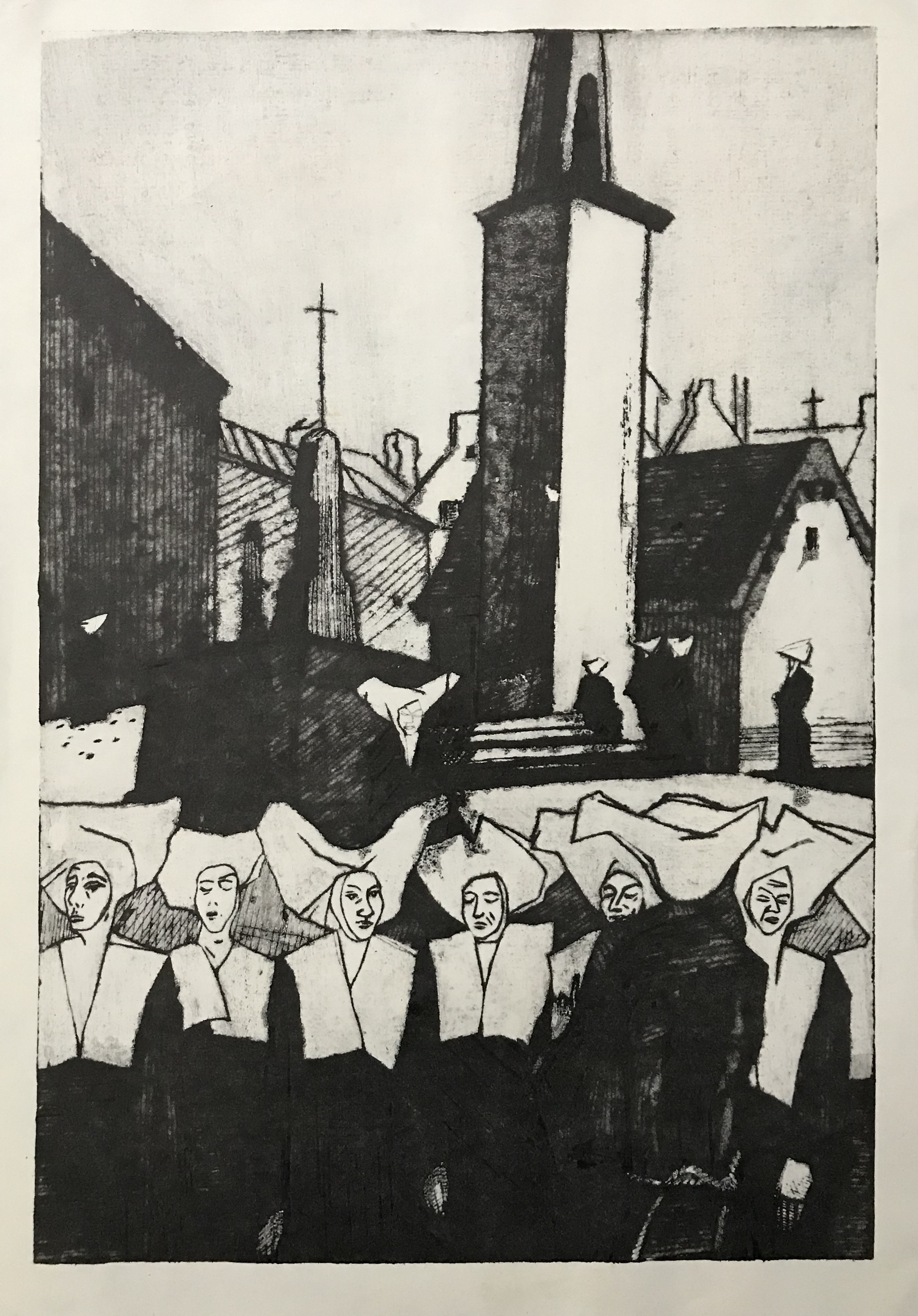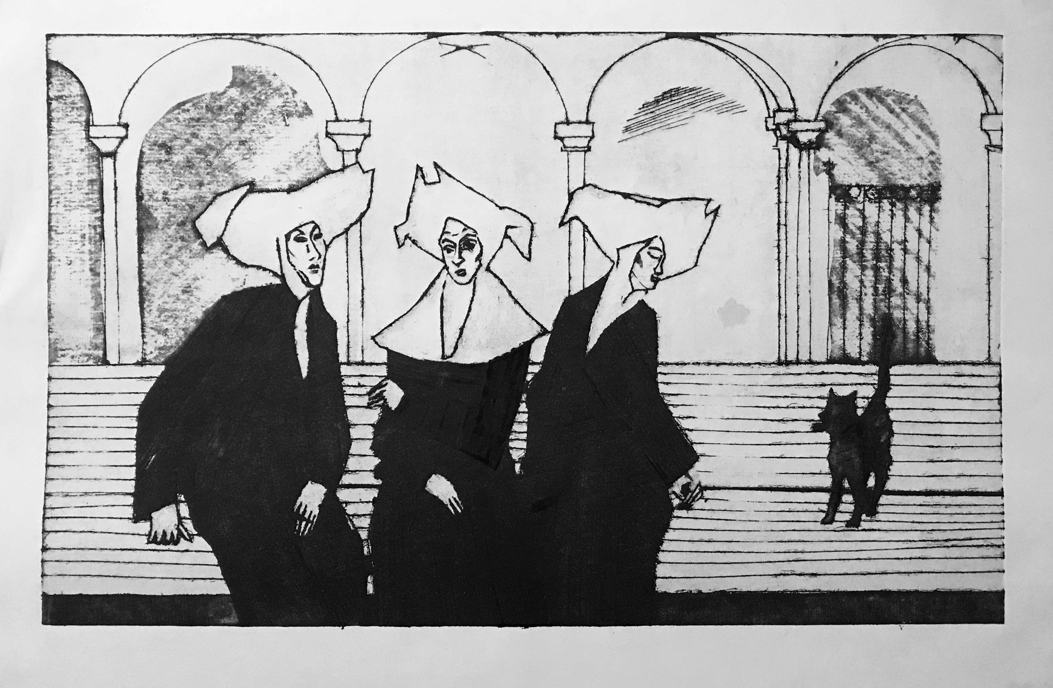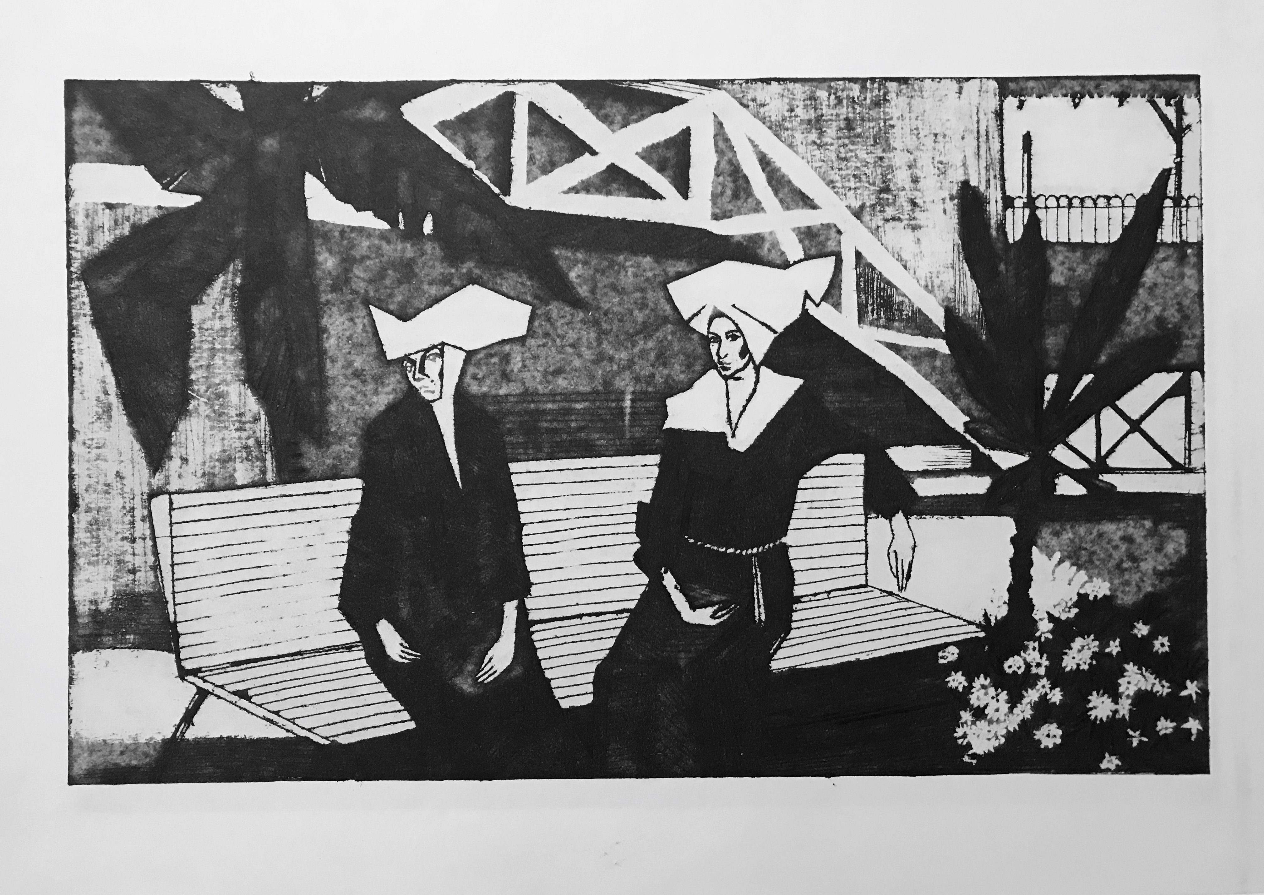 Nuns at noon, gravure sur papier carton, encre d’imprimerie, dimensions variables, 2001