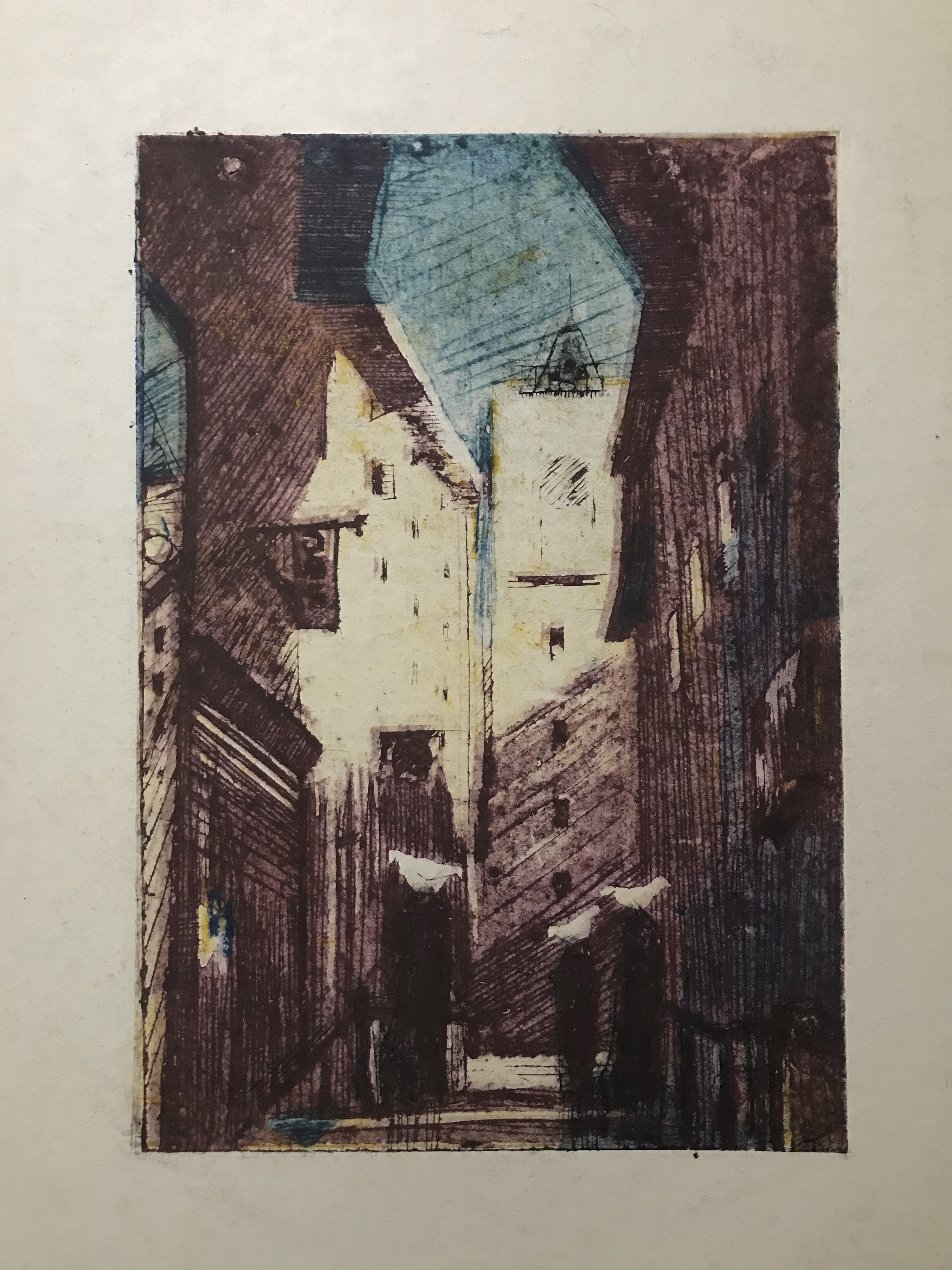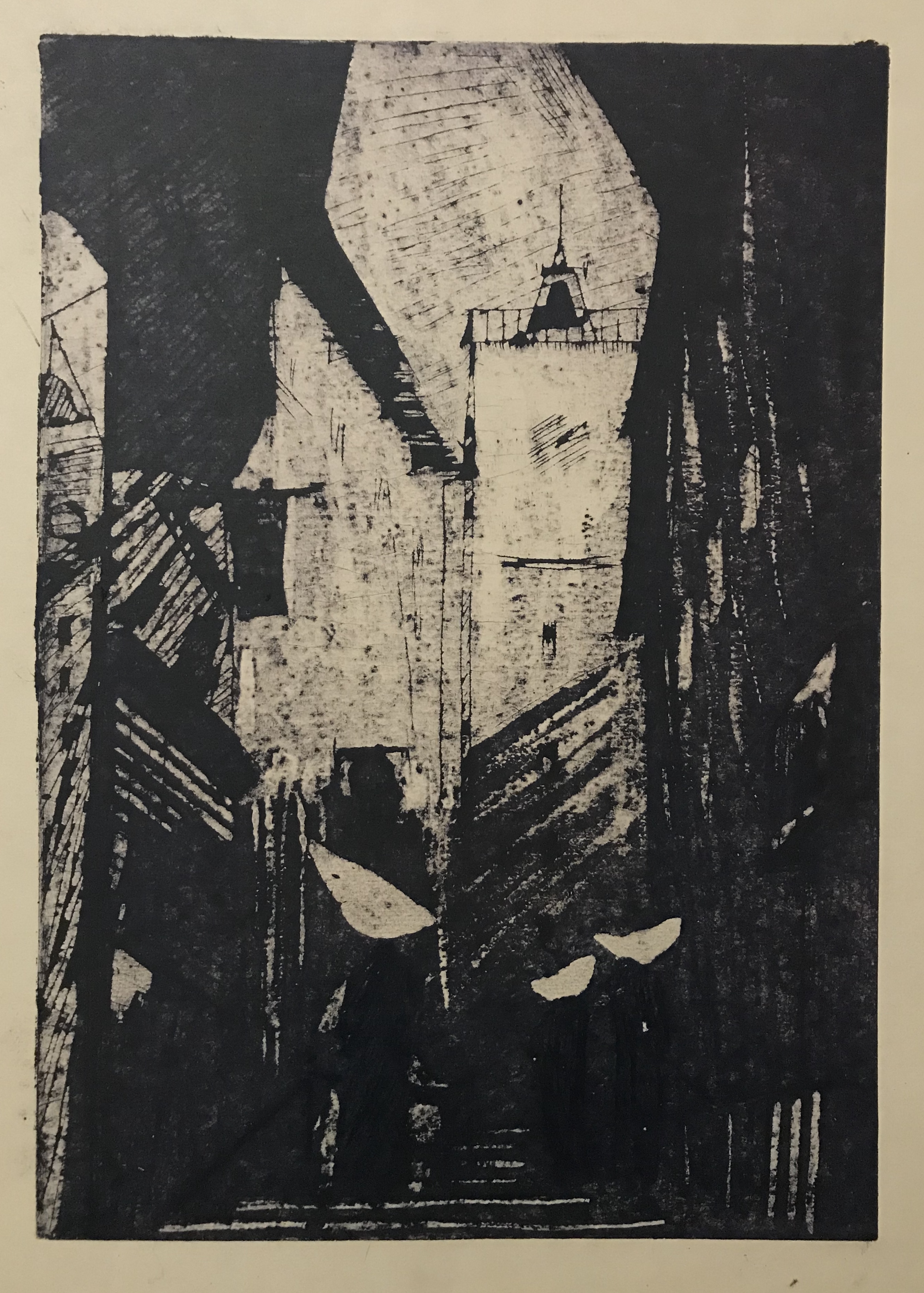 Nuns at noon nous fait entrer dans un pan de l’histoire des jeunes femmes et jeunes filles des Blanchisseries de Madeleine. Ces filles et femmes rejettées par la société étaient considérées comme «perdues» ou «aux mœurs légères». Elles ont été l’objet d’abus, de violences et d’exploitation par les religieuses des couvents. Cette histoire a profondément marqué Anna Abrashina. Elle s’est inspirée d’une visite dans un vieux couvent abandonné, vide de vie mais dont les maisons, l’église restaient intactes. Les personnes pour lesquelles ces architectures avaient été prévues ont disparu. L’artiste a rapproché cette absence à la position qu’occupaient les blanchisseuses de Madeleine. Leur présence était ignorée, elles étaient les ombres de leur soit-disant sauveuses. Ainsi les blanchisseuses n’apparaissent pas dans ces gravures. Seules les religieuses y apparaissent, menant leur vie ordinaire tandis que derrière ce bien-être, cette sérénité ou béatitude figée se cache une grande cruauté envers les plus démunies.