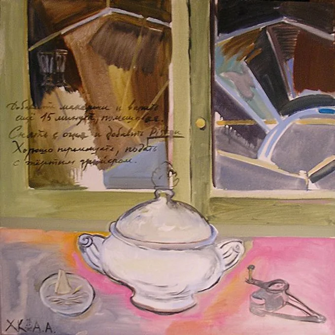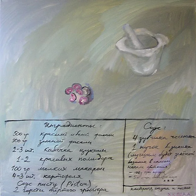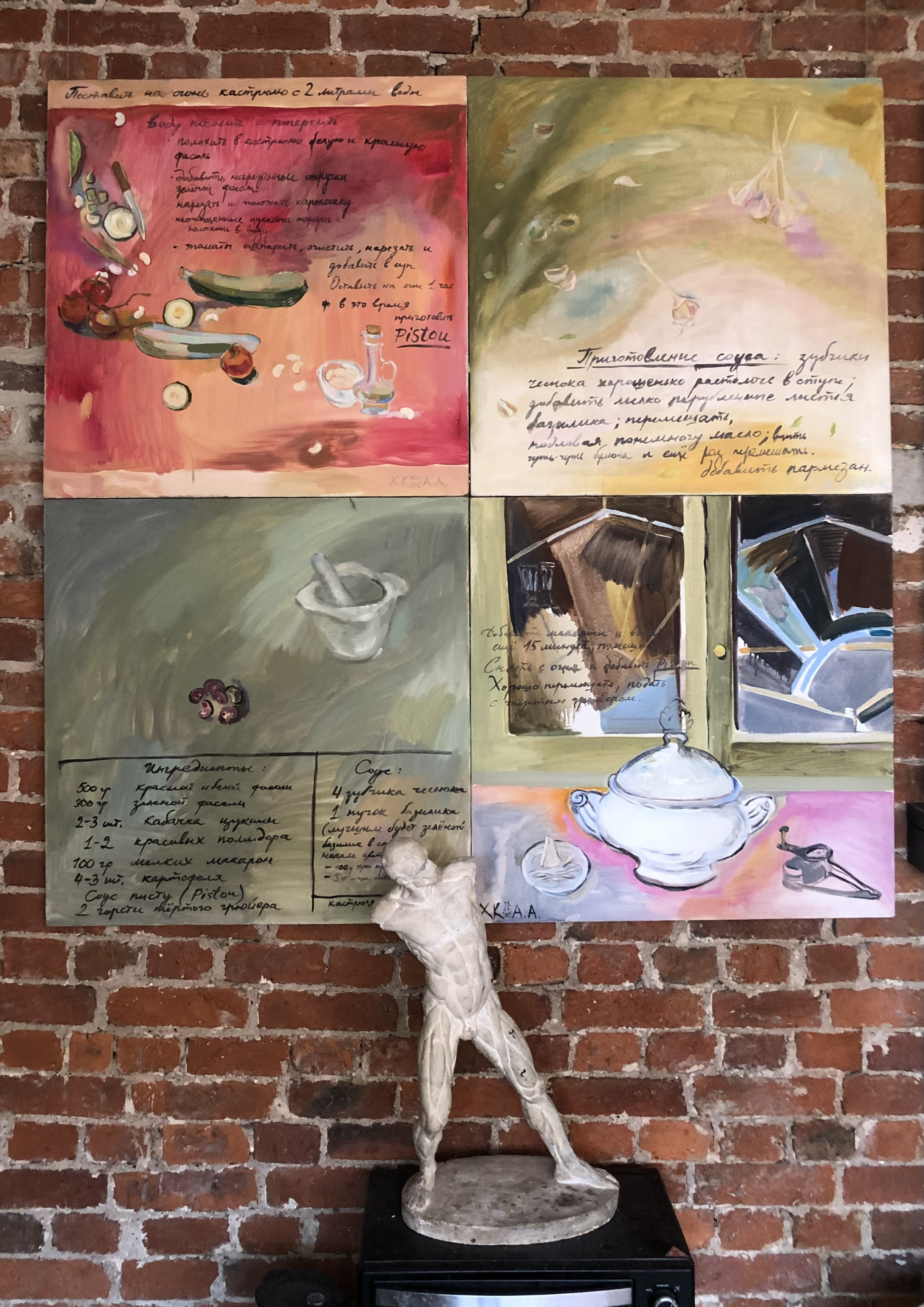 La soupe, série de quatre peintures à l’huile sur toile, 80 x 80 cm, en collaboration avec l’artiste Ksenia Khashkovskaia, 2007